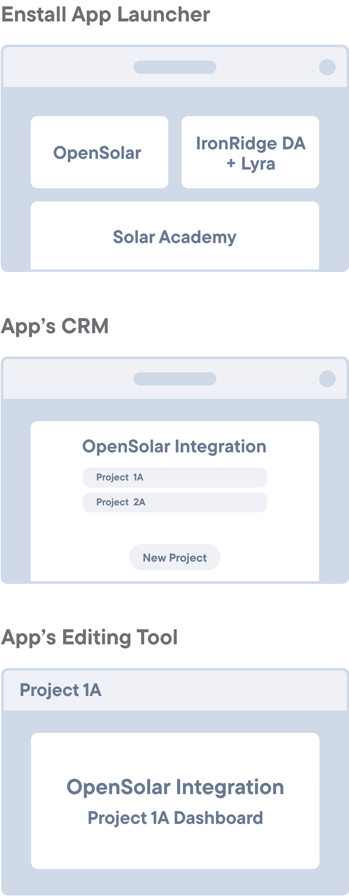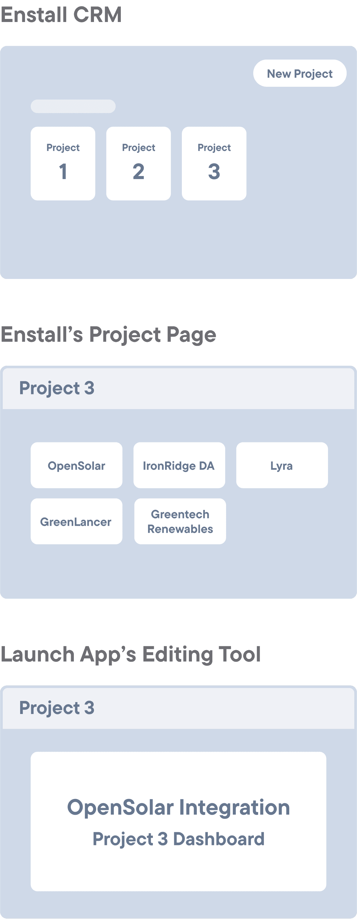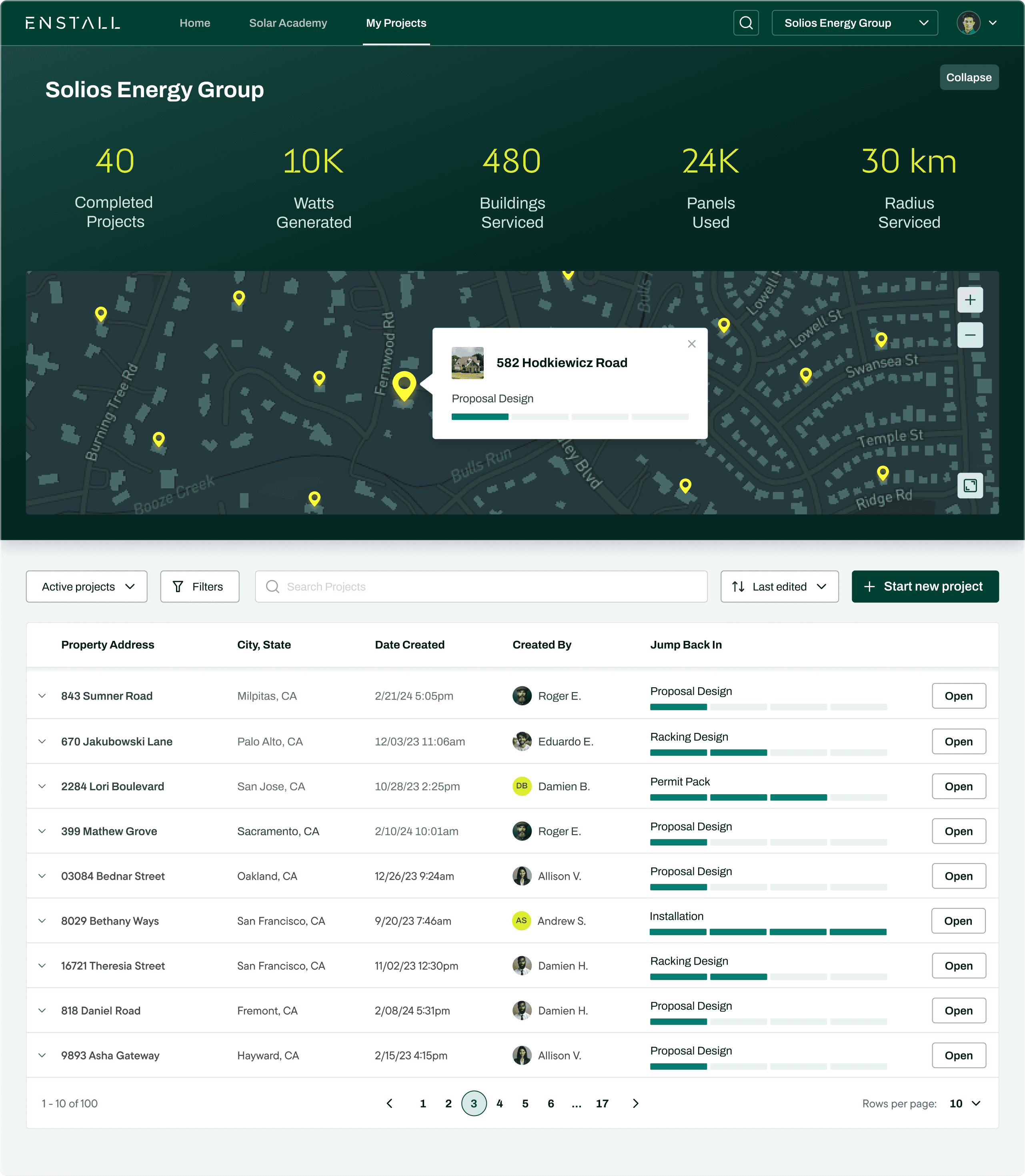 Enstall partners with solar SaaS providers in three areas; sales proposals (OpenSolar), system design (IronRidge), and permitting (Lyra Solar).