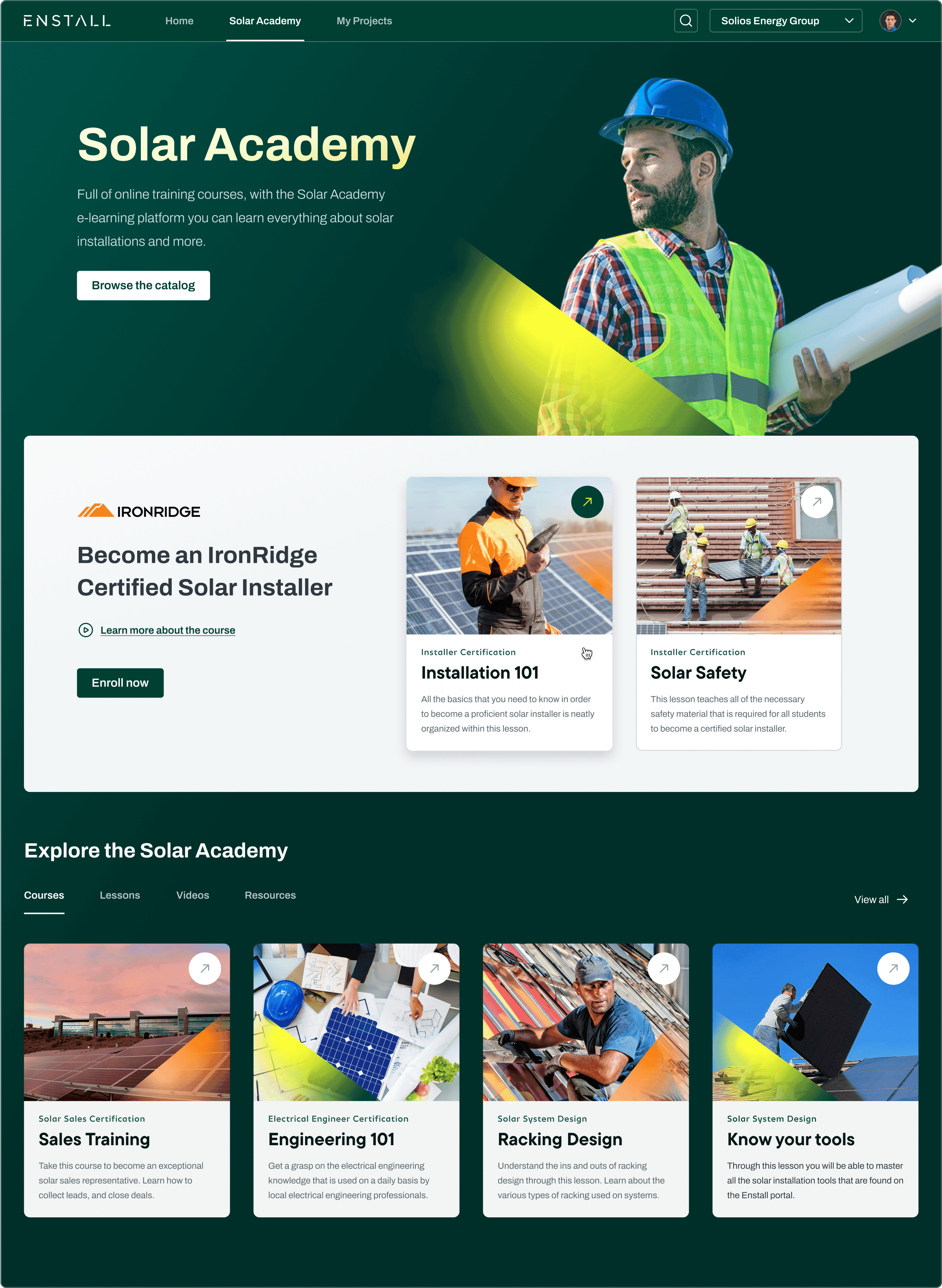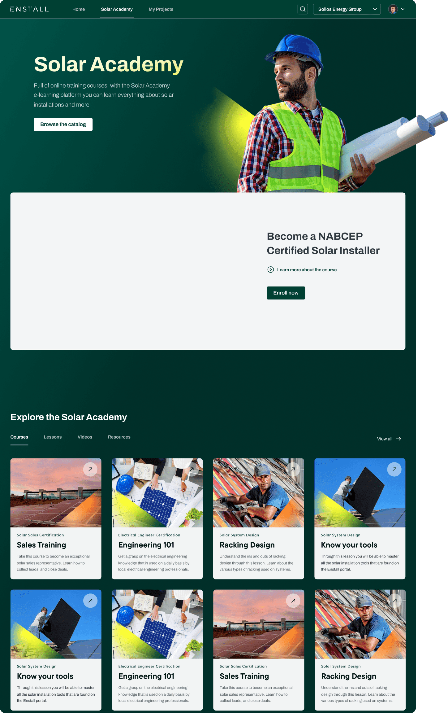 The Solar Academy redefined solar installation education by providing a modern, user-friendly alternative to the traditional NABCEP online training. With interactive courses, streamlined certifications, and real-time progress tracking, Enstall set a new benchmark for upskilling solar professionals efficiently and effectively.